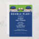 Invitations de baby showers jumeaux créatifs avec jumeaux bleu de baseball et ligne drôle.