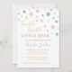 Cette invitation sans distinction de genre est parfaite pour un baby shower. Ce design Twinkle Little Star présente des étoiles rose et bleu aquarelle, parties scintillant or et type amusant.