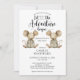 Laissons l'aventure commencer whimsical jumeaux invitation baby shower, avec illustration de bébés éléphants neutres de genre. Typographie de script de calligraphie.