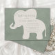 Doux silhouette d'éléphant de couleur neutre avec détails de l'événement à l'intérieur de la forme. Le fond vert foncé est une couleur vert faux rustique. Aussi doux que possible. Une invitation parfaite pour un événement parfait. Style neutre pour le genre. Satisfaction 100% client chez Zazzle tous les jours.