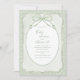 Pastilles vert sauge rustiques avec cadre superposé vert doux et orné d'un ruban et d'un nœud aquarelle vert dessinés à la main. Nous avons utilisé de jolies polices et écritures réalisées dans des couleurs coordonnées pour l'invitation baby shower.