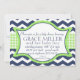 chevron bleu marine et blanc avec vert vif. L'invitation parfaite à votre baby shower.