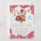 Invitation de baby shower de l'abbé. Cette invitation à baby shower bois mignon avec faon et oiseaux vintages est facilement customisée pour votre événement en ajoutant simplement vos détails dans le style et la couleur de police, et le libellé de votre choix.