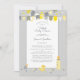 Célébration colorée de baby showers jaunes et gris, conception de baby showers virtuels en ligne avec calligraphie et script en gris, disposés dans une bordure amusante entourée de bannières et de confettis de drapeau coordonnés. En bas de la conception, vous trouverez plus de confettis ainsi qu'une biberon, un canard en caoutchouc, une sucette et des épingles de couches. Pour obtenir de meilleurs résultats, suivez les instructions du modèle et l'espacement lors de la saisie de vos données. Le dos de la carte est un motif à pois gris ultime sur un arrière - plan jaune illuminant et correspond à l'un des drapeaux de la bannière. Envoyez un courriel à invitationsuites@gmail.com avec des questions ou des demandes personnalisées.