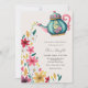 Invitation baby shower avec une bordure de fleurs multicolores avec verdure coulant d'une mignonne théière lunatique. Customisez avec vos informations pour que la mère soit. Cliquez sur "cliquer pour customiser plus loin" pour modifier le style, la taille ou la couleur de la police.