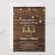 Cette élégante invitation comprend des lampes à cordes brillantes et des jarres de maçon avec un arrière - plan en bois rustique.
