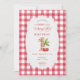 This charming invitation is perfect for celebrating a baby's first birthday! The design features a sweet cherry motif on a classic red gingham pattern, creating a delightful and festive look for your child's special day. It's a delightful way to invite family and friends to share in the joy of this milestone event.