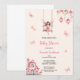 FAIRY PINK BABYSHOWER INVITATION Ce design fantaisiste présente une douce illustration de fées forestières magiques, une jolie maison de champignons et d'élégantes fleurs d'aquarelle rose et rousse.