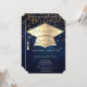 Casquette de graduation en or, et étoiles sur un arrière - plan bleu marine.