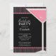 Notre irrésistible verre de martini rose tendance sur mesure accompagné d'un cocktail à l'anneau fiançailles Bachelorette invitation à la fête est amusante et branchée et vous êtes sûr de bien démarrer la fête! Le invitation idéal pour ce dernier voyage avant la célébration du ring est constitué d'un anneau fiançailles dans un verre à martini installé sur un arrière - plan noir avec des pointes noires et roses. Facile à personnaliser avec vos informations de fête Disponible dans d'autres styles et couleurs dans notre boutique à www.celebrateitinvites.com. ©Illustrations JW