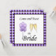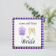 Venez trinquer la Mariée avec des ballons violets et des lunettes de champagne à l'avant. Ballons et toutes les informations pour votre événement au dos de cette jolie invitation violette.
