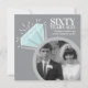 Invitez vos amis et votre famille à une fête spéciale pour vos 60 ans de mariage ou à un dîner de célébration avec ces alliances graphiques diamant étincelantes grises, bleu clair et blanches, invitation avec deux photos. Personnalisées avec vos propres photos du jour de votre mariage et une photo actuelle au verso, puis ajoutez vos propres mots de célébration, la date et le lieu de la fête. D'autres articles assortis sont disponibles. Dessin et conception graphique originale de l'anneau par www.mylittleeden.com sur zazzle.