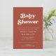 Chaque future maman mérite d'être célébrée, alors assurez-vous de la couvrir de tout votre amour et de quelques cadeaux amusants. Un thème rétro chic : adoptez ce design typographique vintage et élégant pour votre papeterie de Baby Shower, avec un thème de couleur terre cuite. Facile à mélanger et à assortir avec notre papeterie similaire disponible en rose pêche, orange rouille et sucre brun. Couleurs de texte et arrière-plans entièrement personnalisables.
