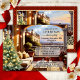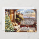Une invitation à la fête de Noël artistique et festive avec une peinture d'un balcon italien avec sapin de Noël et des lampes à cordes. Sur le dos est l'option d'ajouter votre photo personnalisée sur un design de pois rouge et bordeaux rétro. Vous trouverez également un modèle de code QR au verso.