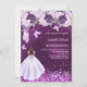 Pour une Quinceañera élégante. Un arrière - plan violet de couleur inégale. Décoré de confettis, chaussures de ballerine, papillons, roses et une fille en robe. Personnalisez et ajoutez le nom, l'âge/le texte et les détails du parti. Le nom est écrit avec un script de style manuscrit