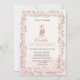 Cette première invitation d'anniversaire avec des chaussures de ballet d'aquarelle et cadre de parties scintillant.
