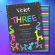 Invitation ballons d'animaux couleur néon 3e anniversaire