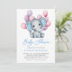Invitation Ballons bleu petit éléphant Script Baby shower mig