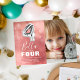 Invitation moderne de fête de quatrième anniversaire pour votre petit bambin, conçu avec une photo du garçon/fille d'anniversaire, un arrière - plan rose aquarelle à l'ombre, confetti de bulle transparente, et un grand ballon d'hélium numéro quatre argent. Le nom de l'enfant est écrit en gros texte calligraphie blanc avec un simple modèle d'anniversaire en dessous qui est facile à customiser.