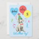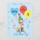 Vous êtes invité à un anniversaire Paw-ty avec ce mignon chiot Weimaraner, vêtu de casquettes de fête, entouré de ballons colorés et de serpentins. Le texte peut être facilement personnalisé. Fournitures de partie correspondant disponibles.