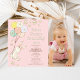 Ballons de marguerites roses Certains lapin 1er anniversaire Invitation Bébé doux thème de premier anniversaire invitation pour une petite fille avec un lapin blanc, quelques ballons et marguerites sur un arrière - plan rose clair. Ce lapin qui tourne une invitation de premier anniversaire comporte également une photo et est idéal pour quelqu'un qui cherche une invitation de style moderne.
