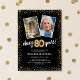 Célébrez le grand jalon de quatre-vingts ans avec nos élégantes invitations à la fête d'anniversaire. Avec un arrière - plan noir tendance personnalisable, un modèle photo d'alors et d'aujourd'hui, et des accents dorés, ces invitations laisseront une impression durable. Les détails du ballon en hélium doré apportent une touche de magie, tandis que le modèle de texte moderne de 80e anniversaire est facile à personnaliser sans effort. Parce que le style n'a pas de limite d'âge !