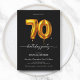 Gold Balloon Black 70th Birthday Invitation. Célébrez dans le style avec cette invitation d'anniversaire moderne et élégante avec des touches audacieuses de noir et d'or et une illustration chic en ballon en papier. Parfait pour marquer un moment de vie majeur, le design allie sophistication et touche festive. L'élégance de la disposition renforce son charme contemporain, tandis que les luxueux détails dorés dégagent une élégance intemporelle. Idéale pour des anniversaires marquants, cette invitation donne le ton d'une célébration inoubliable, mêlant esthétique moderne et glamour classique.