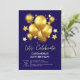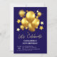Elégante invitation d'anniversaire avec des ballons d'or et des étoiles brillantes sur une chute de fond bleu marine. Toute invitation d'anniversaire d'âge.