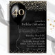 Cette invitation personnalisée présente un fabuleux thème de fête du 40e anniversaire. Un grand ballon noir est placé sur la gauche avec "40" imprimé dans une feuille d'or. Les confettis de parties scintillant d'or accentuent les parties supérieure et inférieure. Il est parfait pour un anniversaire, un anniversaire ou toute autre occasion spéciale.