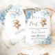 Invitation Ballons Ours Teddy Bébé Bleu Floral Boy Douche