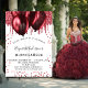 Pour un élégant Quinceañera, 15ème anniversaire. Une arrière - plan blanche design. Décoré de faux parties scintillant rouge et de ballons. Personnalisez et ajoutez un nom, un âge et des détails de la fête. Le nom est écrit avec un script de style manuscrit