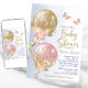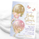 Baby shower rose. violet et or invitation avec de jolis ballons roses et or avec fleurs, papillons et arcs sur un arrière - plan lavande violet et blanc. Cette invitation mignonne baby shower rose, or et lavande violet est facilement customisée avec vos détails de l'événement.