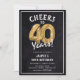 40 ans de fête ! Ces invitations de fête du 40e anniversaire sont conçus avec le titre "Cheers to 40 Years!". Doté d'un arrière - plan rustique, de ballons d'hélium numéro d'or quarante, d'une typographie blanche branchée et d'un simple modèle de fête d'anniversaire qui est facile à customiser.