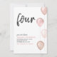 Fille Blancs rose Ballons Simple 4ème anniversaire Invitation