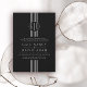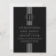Bandes blanches et initiales noir faire-part de mariage. Il affiche des rayures verticales blanches au centre avec un cercle avec vos initiales et deux petits coeurs et votre texte. Le dos est de couleur noire.