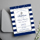 Invitations élégantes et modernes BAPTISM CHRISTENING. Conception avec confetti en faux argent et arrière - plan bleu marine et rayures blanches. Traversez au milieu. Tout le texte peut être modifié avec la police et la taille. N'oubliez pas d'obtenir les autocollants de faveur correspondants.