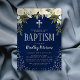 Invitation Baptême Bleu Argent Floral Garçon Baptême