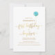 Un ballon bleu amusant flotte au-dessus de ce baptême combiné et invitation de premier anniversaire avec la fausse calligraphie dorée. Le ballon rempli d'aquarelle donne la scène à vos invités pour se joindre à vous pour la fête de votre bébé à la suite de sa cérémonie de baptême. L'illustration est unique à la papeterie Concierge et les mots d'or "baptême" et "premier anniversaire" sont des encres d'imprimante et ne sont ni métalliques ni déjoués.