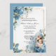 Doté d'une belle invitation Baptême Christening faite sur mesure avec des fleurs bleues et la Sainte Mère tenant Jésus dans ses bras. Tout le texte et les polices peuvent être modifiés.