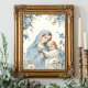 Doté d'une belle invitation Baptême Christening faite sur mesure avec des fleurs bleues et la Sainte Mère tenant Jésus dans ses bras. Tout le texte et les polices peuvent être modifiés.