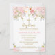 Invitation Baptême élégante et féminine avec des fleurs roses peintes à la main et des accents dorés. Invitation Baptême florale sur mesure, parfaite pour tous les thèmes. Cela peut également être customisé pour tout événement religieux, y compris le baptême, la Dédication, la Première Communion ou la Confirmation.