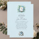 L'Invitation aimait ceux qui fêtaient une étape sacrée avec cette Croix Baptiste Bleue Florale et Invitation Bible. Doté d'une croix florale bleue magnifiquement détaillée et d'un design biblique classique, cette invitation est parfaite pour annoncer un baptême ou une cérémonie de baptême. Le design élégant donne un ton serein pour la journée spéciale, avec du texte personnalisable pour inclure tous les détails de votre événement. Parfait pour un bébé garçon ou un jeune enfant, cette invitation est une belle façon de réunir famille et amis pour une occasion mémorable et spirituelle.