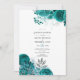 Invitation de baptême de couple floral aquarelle sarcelle - turquoise et argent.