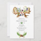 Invitation de baptême de couple tendance de la forêt sauvage avec des bouquets peints à la main à l'aquarelle avec des baies forestières - myrtilles, mûres et brindilles, pommes de pin, fougères, plumes et bois de cerf.