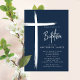 Cette invitation au baptême bleu moderne présente un design croisé élégant, parfait pour célébrer cette étape religieuse spéciale. Le code bleu marine le rend idéal pour une cérémonie de baptême de bébé garçon. Le design simple et sophistiqué impressionne les clients et donne le ton pour un événement mémorable.