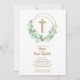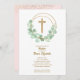 D'élégantes invitations au baptême comportent une croix de parties scintillant en faux or, une couronne de feuilles d'eucalyptus et vos détails en lettres chic sur le devant et des points dorés sur le rose pâle sur le dos. Parfait pour la première communion, le baptême ou le baptême de votre fille. Objets CORRESPONDANTS disponibles dans notre magasin.