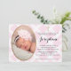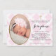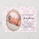 Un baptême/baptême est un jour spécial que nous aimons voir et célébrer. Félicitations pour le jour béni de votre enfant, nous espérons que cette invitation est tout ce que vous espérez, Personnalisez et customisez facilement cette invitation avec la photo et les détails de célébration de votre enfant. Doté d'un arrière - plan rose aux cercles blancs et d'une élégante croix dorée.