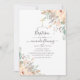 Baptême floral rose vierge invitation avec élégante typographie manuscrite personnalisable selon vos spécificités.