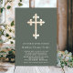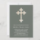 Invitation de baptême personnalisable avec une croix à effet or sur un arrière - plan vert de forêt.