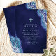Célébrez l'occasion sacrée d'un baptême avec cette magnifique invitation de vague de parties scintillant bleue et argent. Offrant un design de vagues chatoyantes avec une croix délicate, cette invitation est parfaite pour inviter amis et famille à se joindre à cet événement spécial. Les couleurs élégantes et le design artistique apportent une touche de grâce et de beauté, ce qui en fait l'endroit idéal pour une célébration si significative. Customisez les détails pour créer une invitation unique et mémorable pour le baptême de votre enfant.